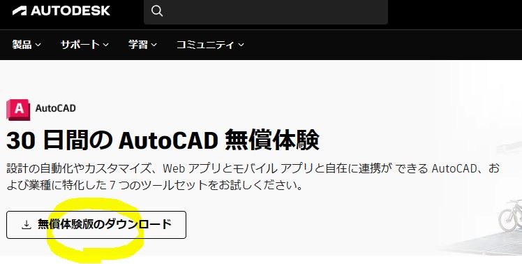 AutoCADの公式サイトからダウンロードするには、以下の手順を実行します。