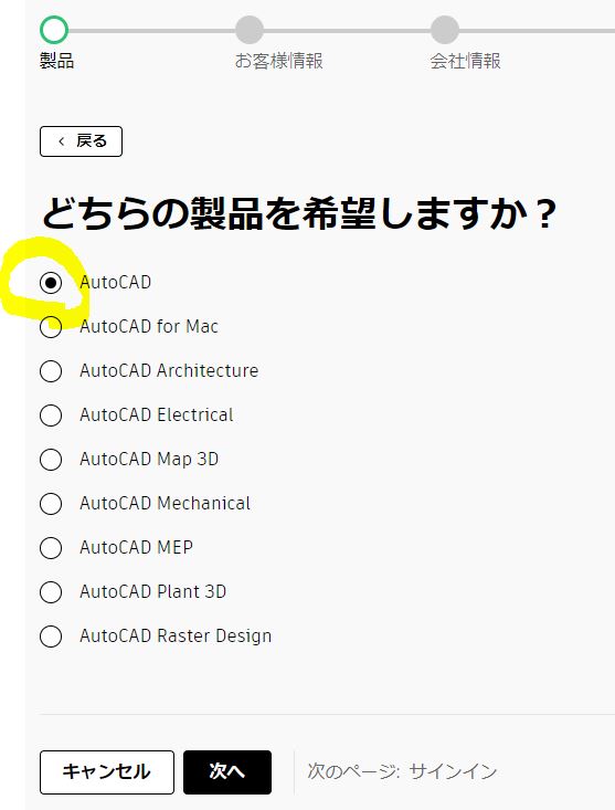 上記の行程で進んでいくと次の画面になります。Auto CADをダウンロードするにはAuto desk社のアカウントが必要です。説明して行きます。