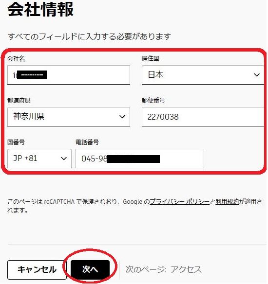 5.会社が概要も必要な事項を入力して行きましょう!最後に「次へ」をクリック