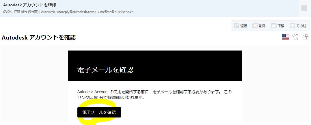 自分のメールフォルダを確認するとこのような文章でメールが届いています。メールを開けて確認ボタンを押しましょう!