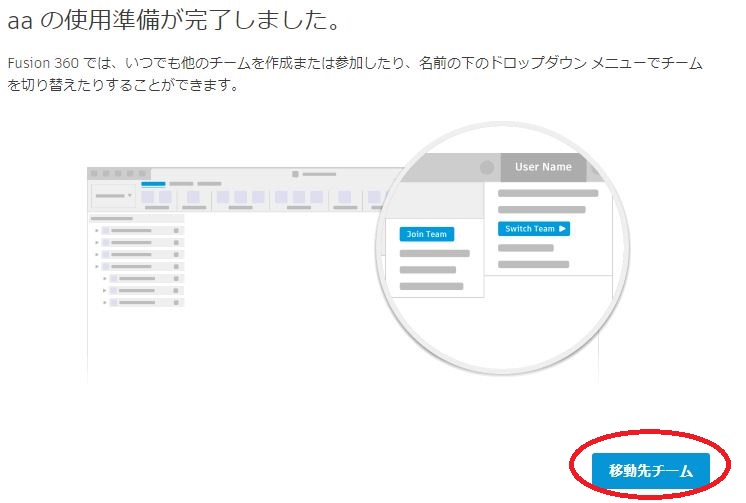 初めての方は迷いますが最初の立ち上げ画面を見たい人はまだ「チームを作成」していないと思いますので「既存のチームに参加」を選びクリックします。